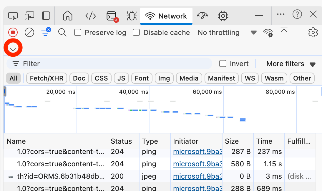 Save the HAR File: Once you've captured the necessary activity; click on the Download icon, give the file a name, and save.