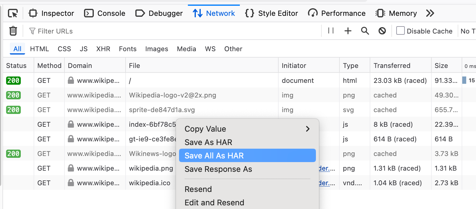 Export the HAR File: Right-click on any of the recorded requests and choose "Save All As HAR".